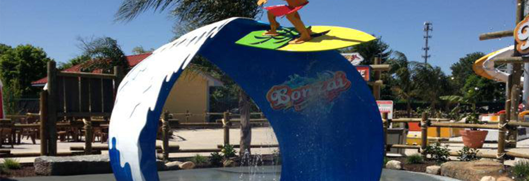 A tailor-made project realized for the entrance of the newly built Six Flags Park attraction, the Bonzai Pipelines. This arch is installed at the entrance of the Hurricane Harbor.
